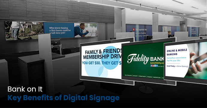 Digital signage lets you showcase your brand personality with vibrant visuals and consistent messaging across all screens. Also, it has a crucial role to play in defining marketing strategies for banks or financial institutions.